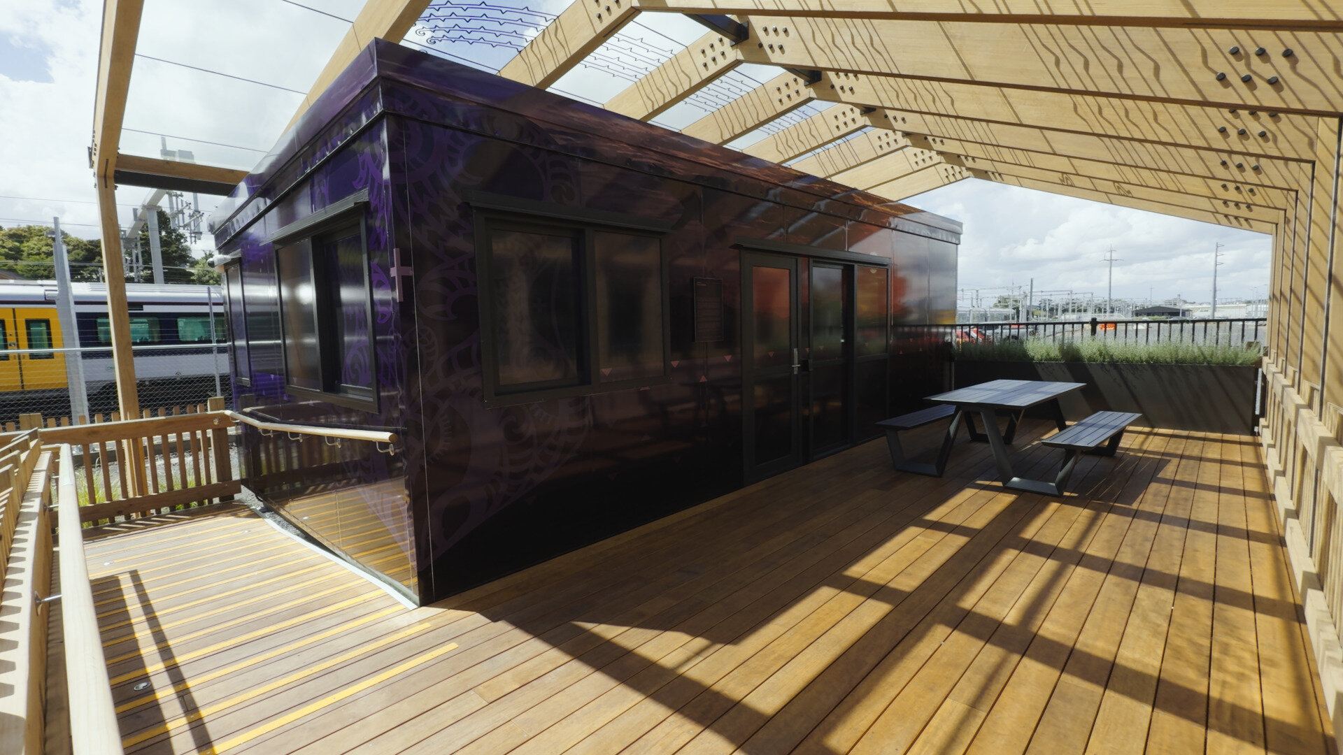 The complete facility was manufactured at Castle Collab’s Auckland yard, transported to site, and installed with minimal disruption to station operations. The pergola structure, decking, and outdoor furniture were assembled on-site by our installation team within the agreed programme. From initial consultation to final handover, the project was delivered on specification and on schedule.