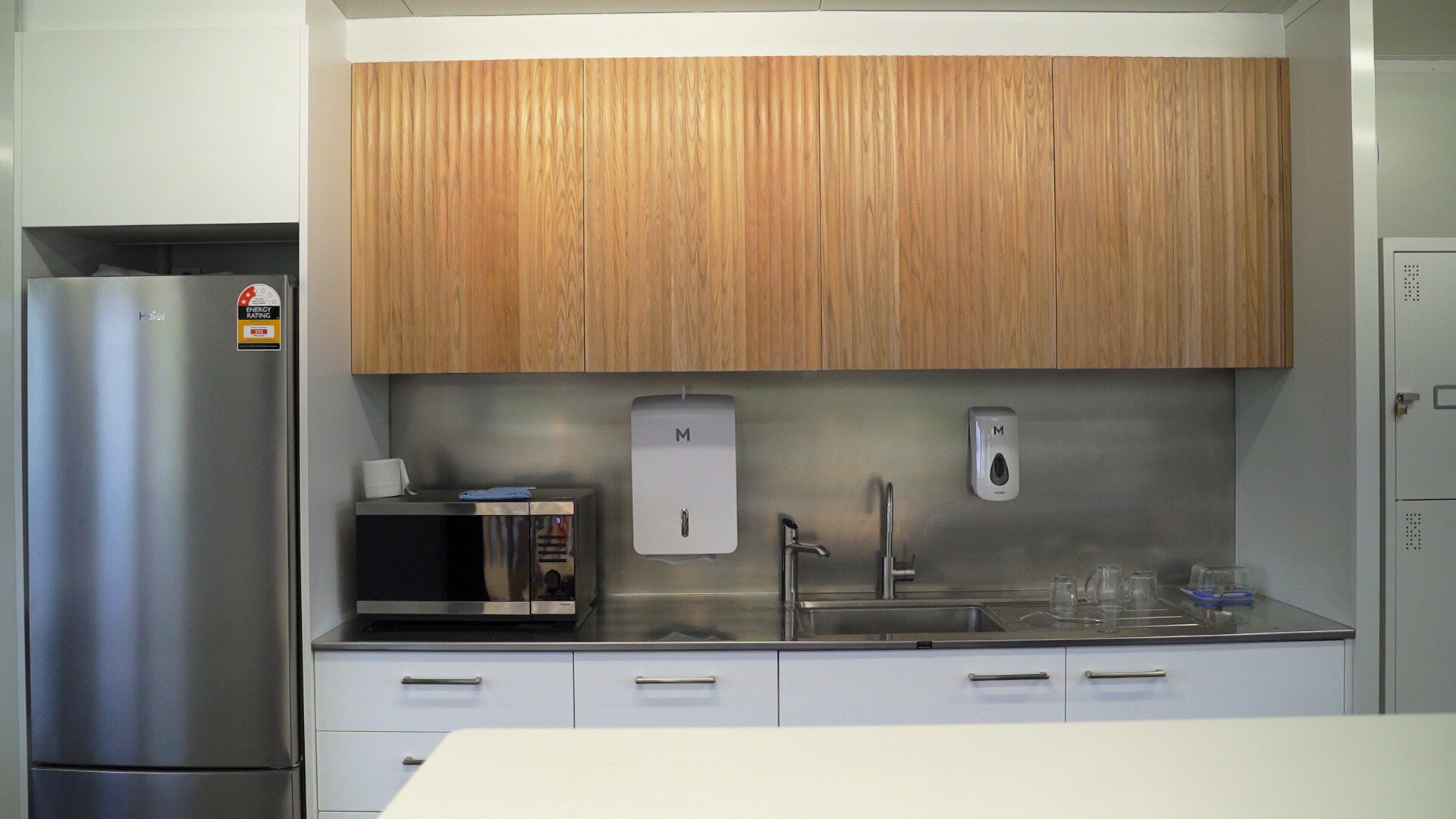 The engineered timber pergola structure extends the usable space outdoors, providing covered breakout areas with integrated seating, complete with timber decking that creates a seamless transition between interior and exterior environments. Every detail was considered: from the Gallagher electronic security access system ensuring controlled entry, to the high-specification LED lighting throughout the interior designed for energy efficiency and occupant comfort.